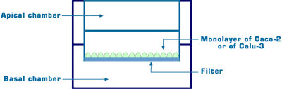 uses a model of the intestinal mucosa based on the human colon carcinoma